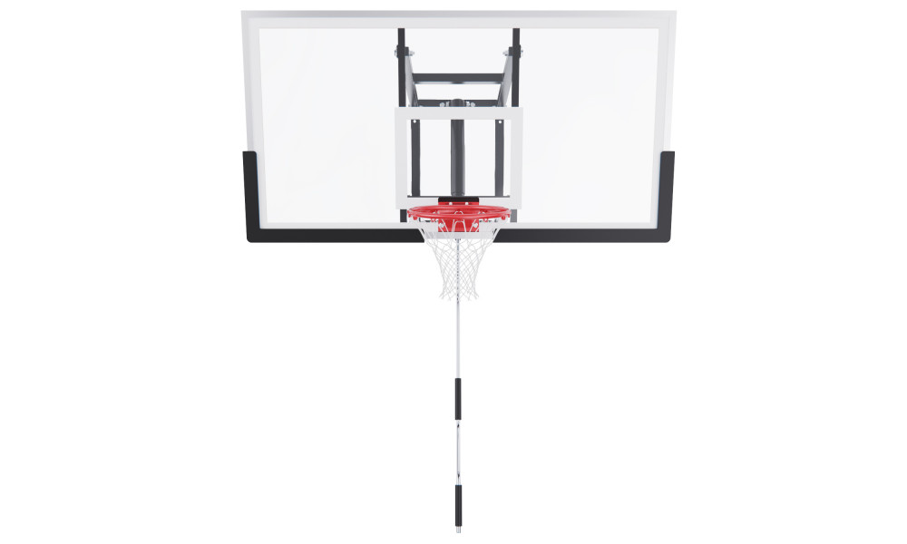 Щит изготовлен из прочного закалённого стекла толщиной 8 мм — материала, обеспечивающего отличный отскок мяча и устойчивость к ударам. Его размеры — 152 х 80 см, что делает его максимально приближенным к профессиональному оборудованию. Регулируемый вынос щита (51–55,5 см) повышает безопасность и удобство во время игры. Дополнительную безопасность обеспечивает защита Poly Pade, установленная по нижнему краю щита.